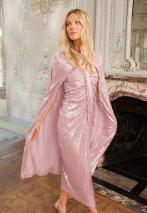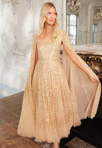 Moonlight Sequin Cape Sleeve Ankle Gown