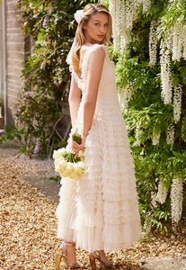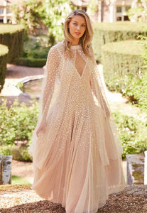 In our latest collection, Bright Star, signature silhouettes are reimagined for the modern romantic. Inspired by Keats’ words “Bright star, would I were steadfast as thou art,” each piece echoes the quiet magic of the night sky through shimmering sequins, airy tulles, and soft luminous hues. Discover statement evening gowns with dramatic caped sleeves and bow detailing to ethereal textured creations.