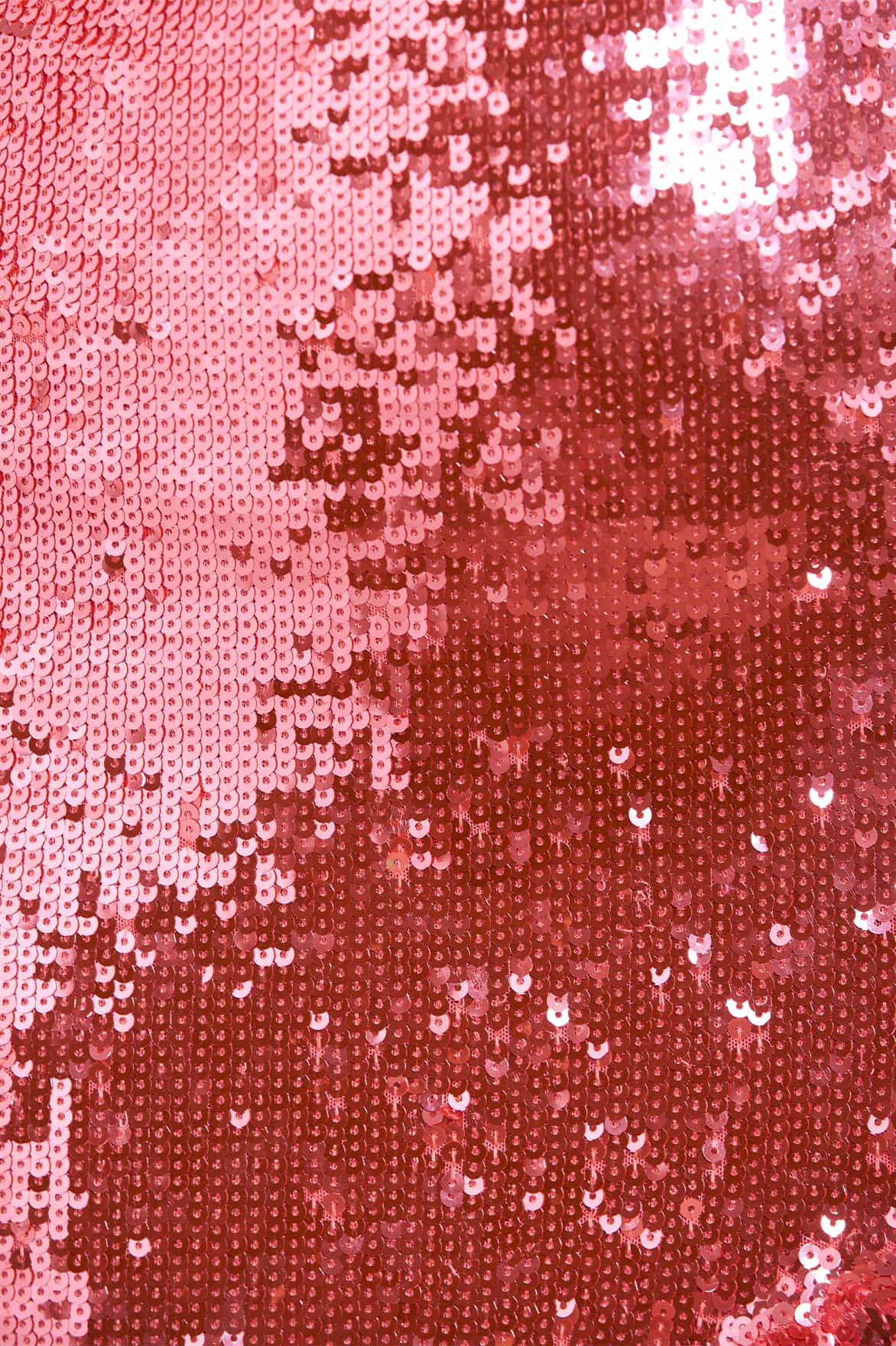 The Betty Ankle Gown in Sky Pink. This statement gown is adorned with specially selected metallic sequins, creating a dramatic, shimmering look. Designed with power mesh fabric for stretch, comfort and full movement, whilst maintaining a high-shine look. Crafted with an elegant one-shoulder frilled neckline to create a waterfall ruffle effect. Beautifully engineered with the most flattering silhouette and an open front split to reveal the leg. The perfect contemporary party look.