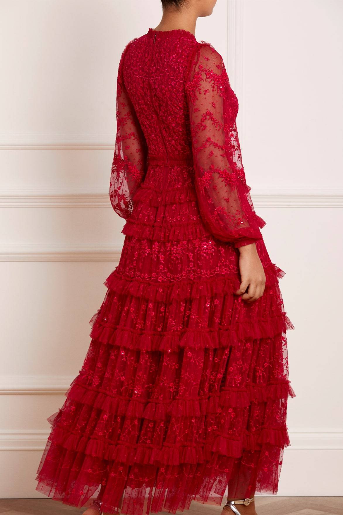 Moonlight Sequin Cape Sleeve Ankle Gown