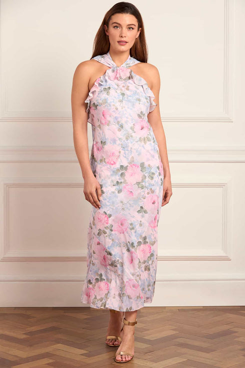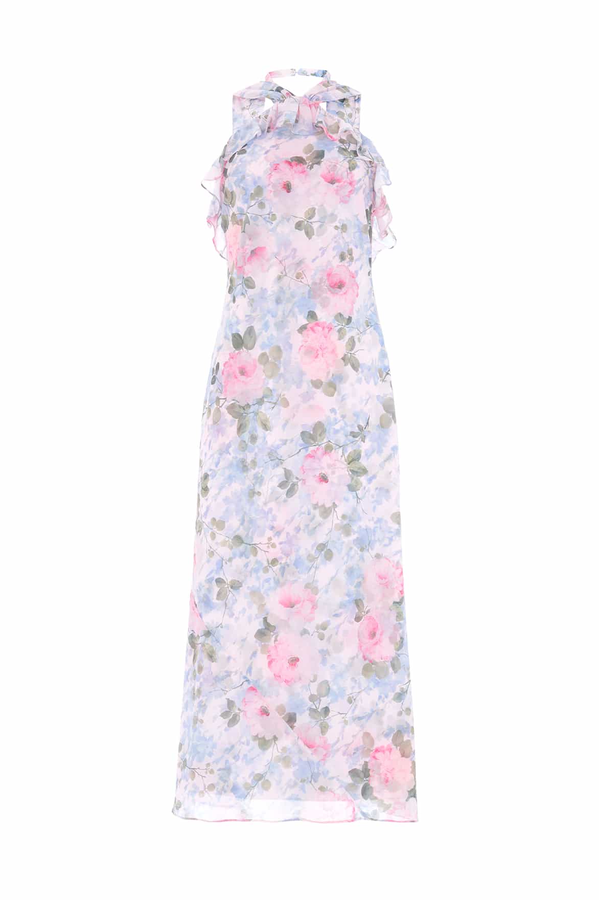 Camille's Garden Chiffon Halter-Neck Ankle Gown