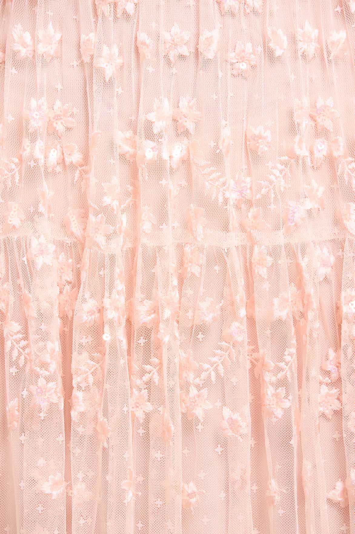 - Kisses tulle decorated with sequins and floral embroidery