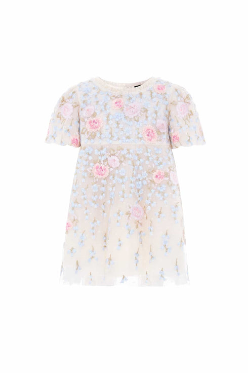NEW SEASON. The Cressida Embroidery Baby Dress in Cream/Multi. Delicately embroidered with colourful blooms on layers of airy tulle. With a lightly gathered skirt and sweet finish, it’s perfect for special family moments. This design complements the Cressida Floral Short Sleeve Gown from the womenswear line for a harmonious family look.