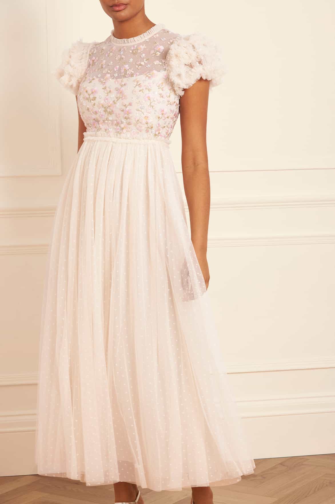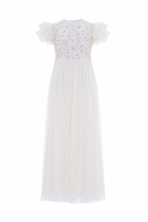 Dahlia Ditsy Bodice Round Neck Ankle Gown