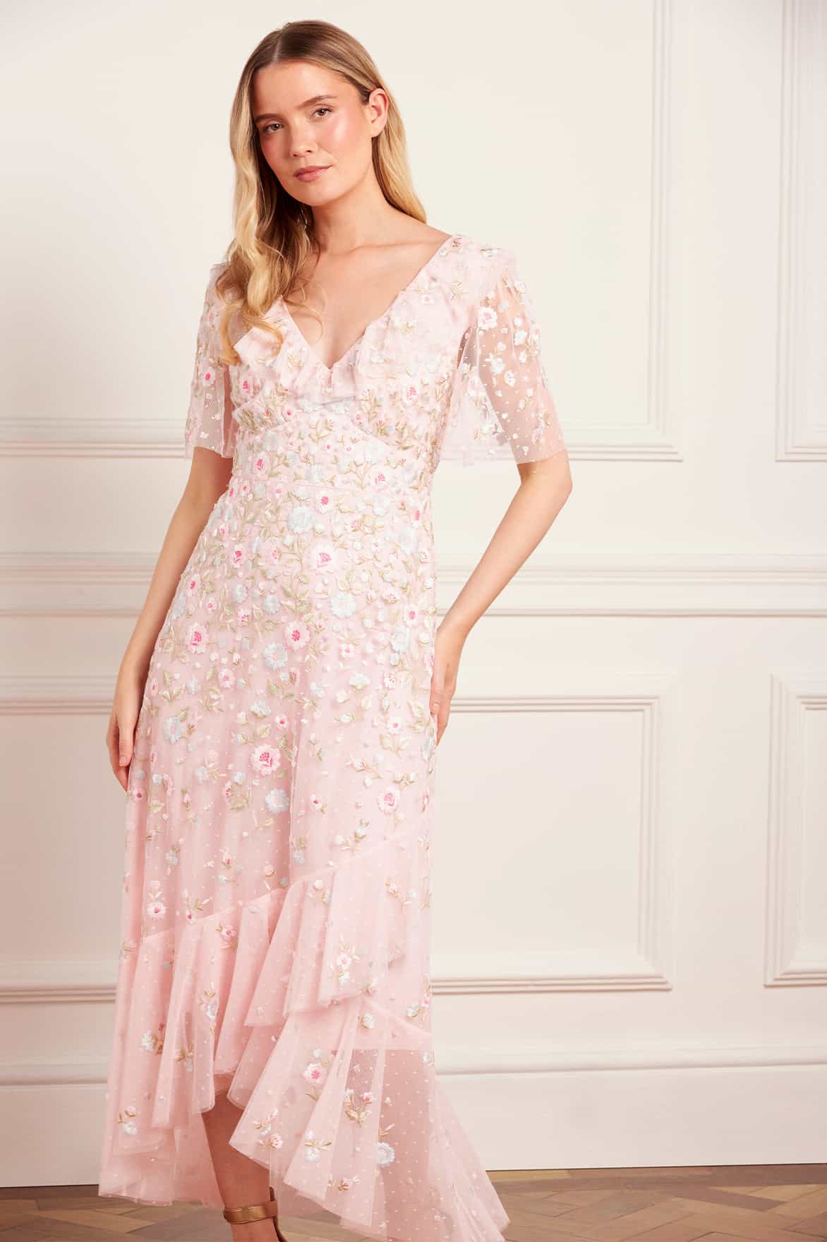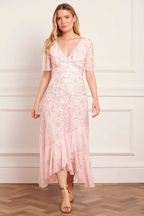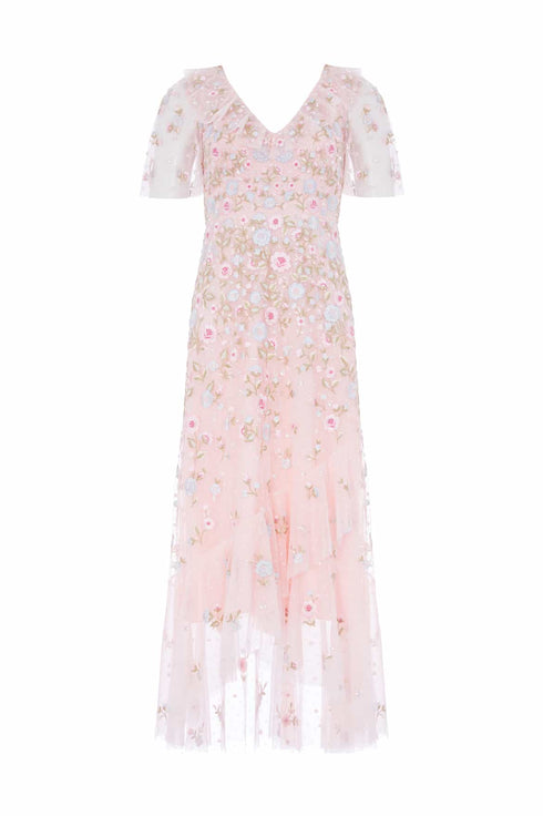 Ethereal Blooms Frill Ankle Gown