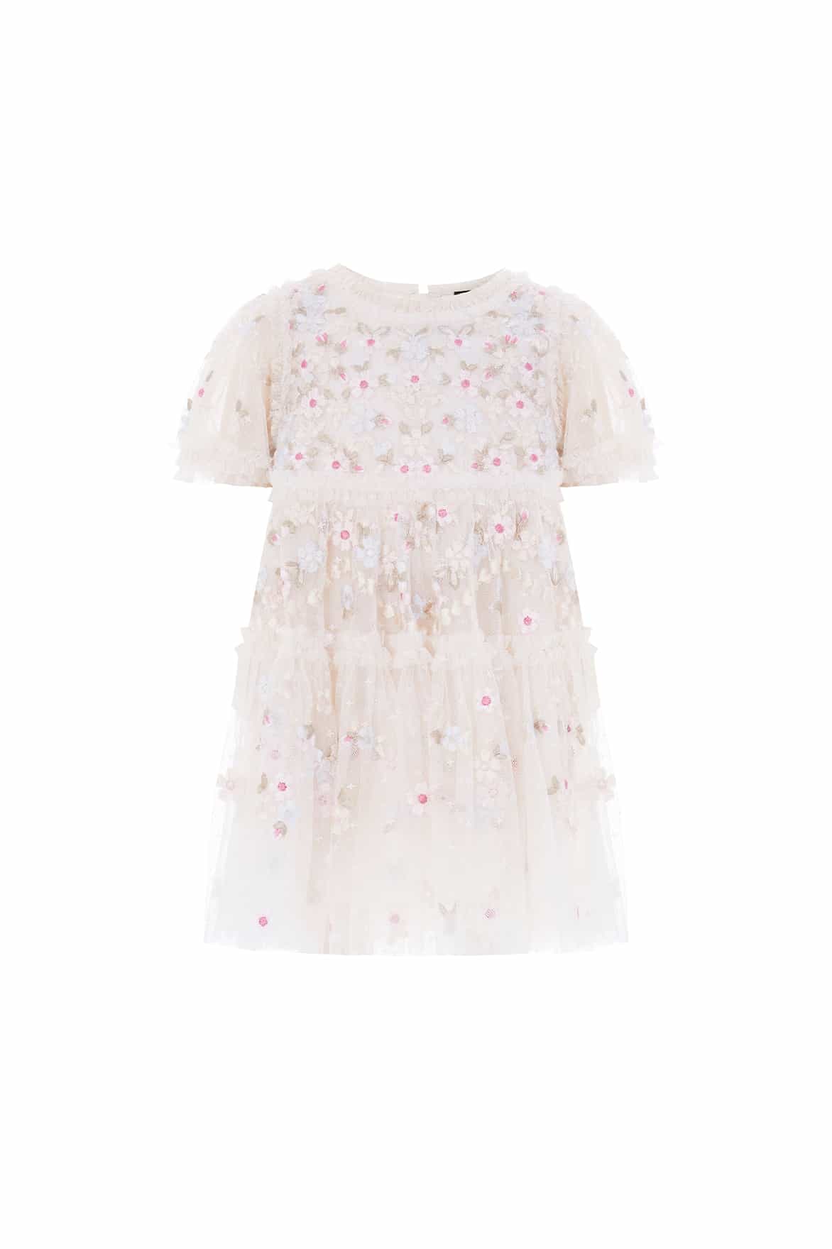 NEW SEASON. The Garland Ribbon Baby Dress in Cream/Pastel. A charming design with ribbon-inspired embroidery on layers of soft tulle. With gentle gathers and a full skirt, it’s crafted for little ones to move with ease. This piece complements the Garland Ribbon Ankle Gown from the womenswear line for a coordinated moment.