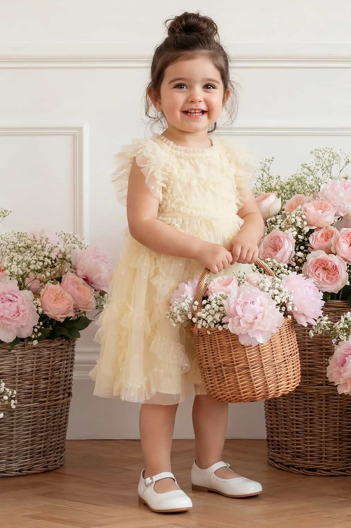 NEW SEASON. The Genevieve Baby Dress in Lemon Sorbet. A light and joyful design, embellished with soft floral embroidery. With a full, floaty skirt and a comfortable fit, it’s perfect for warm-weather celebrations.