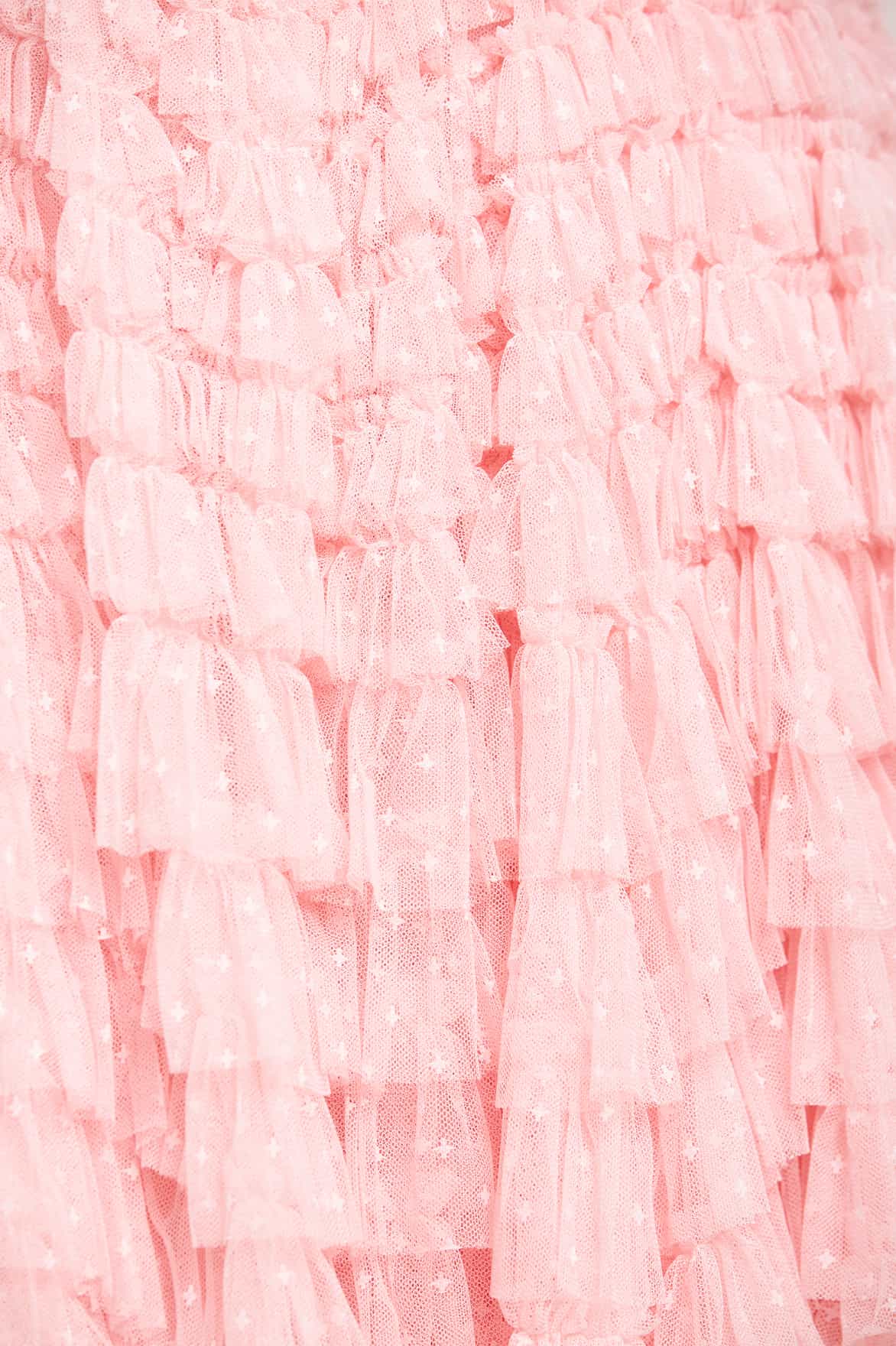 - Kisses tulle decorated with layers of kisses tulle ruffles.