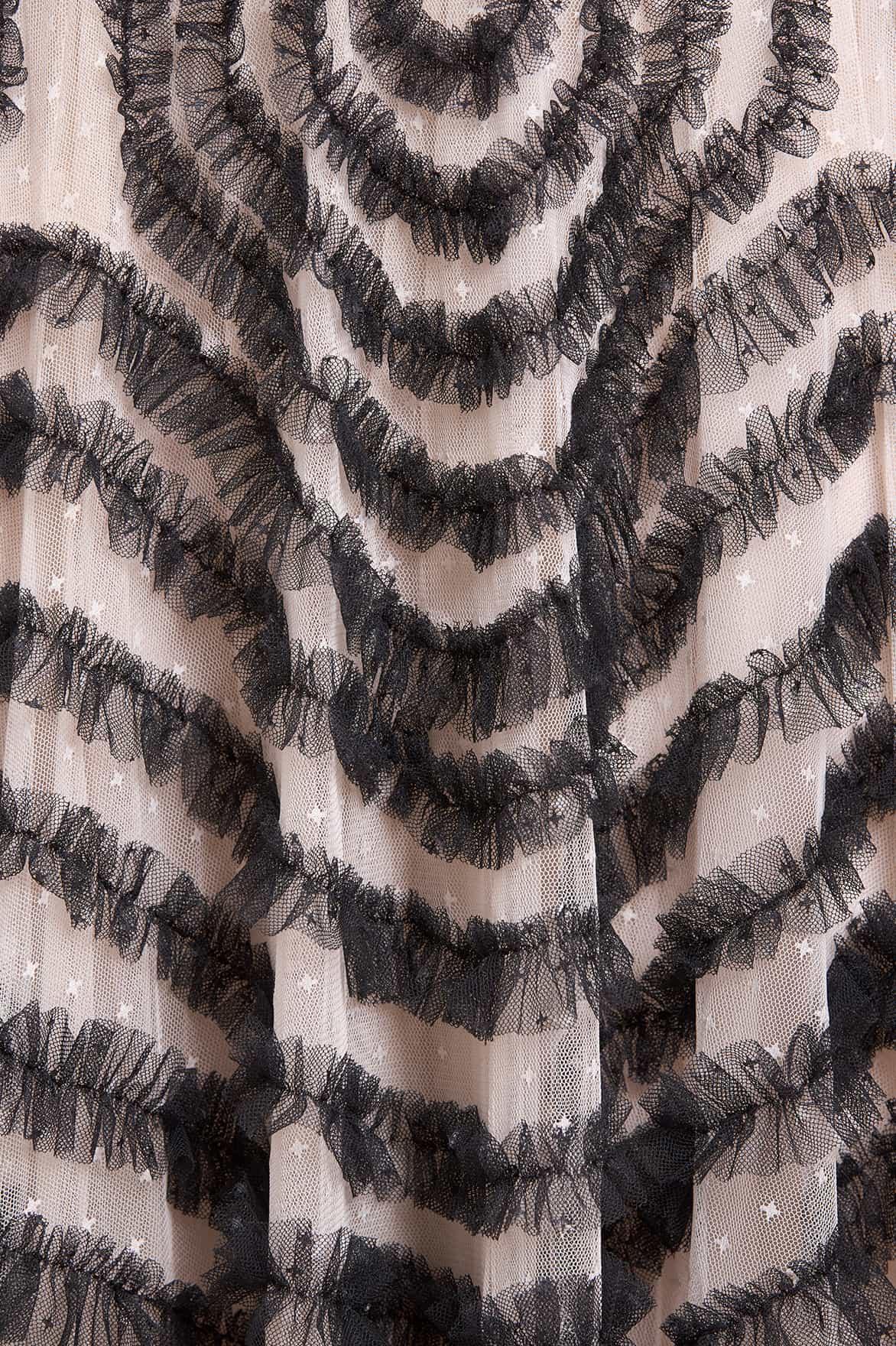 - Kisses tulle decorated with layers of kisses tulle ruffles.