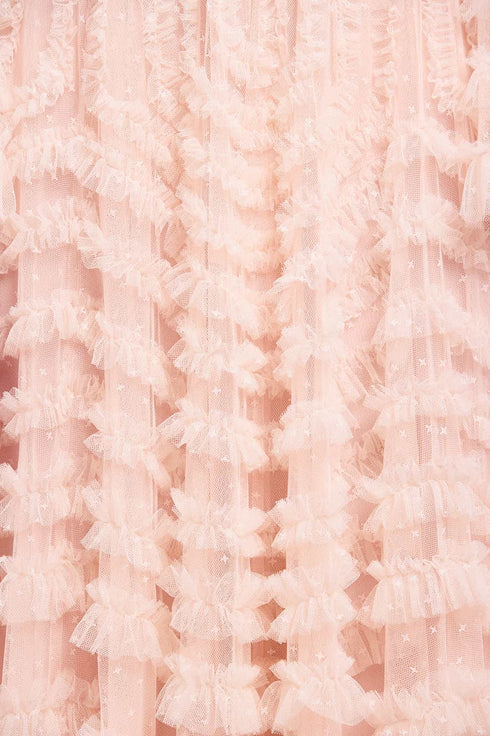 - Kisses tulle decorated with layers of kisses tulle ruffles.