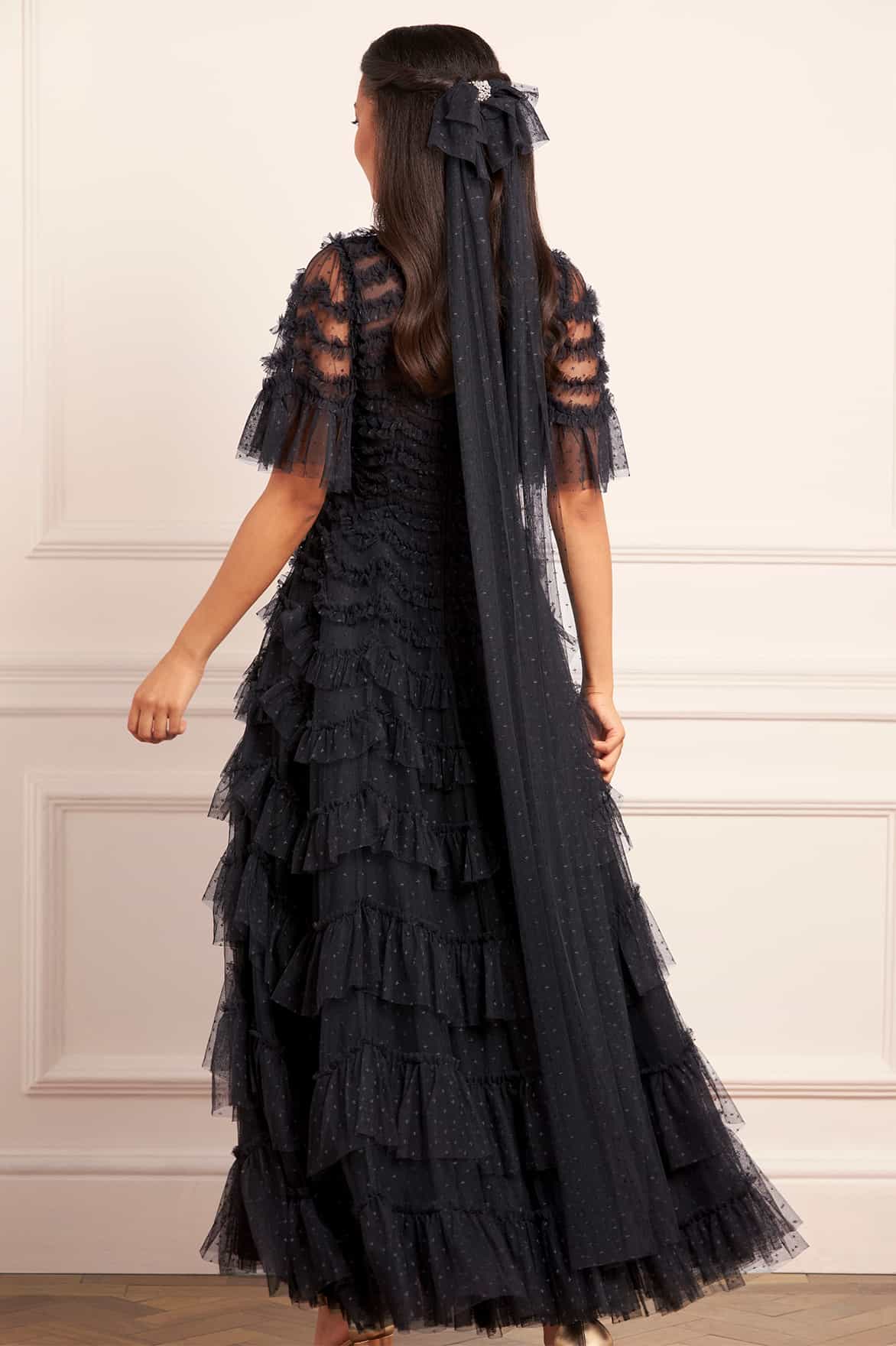 NEW SEASON. The Long Tulle Hair Bow in Graphite. A whimsical accessory inspired by the collection’s Victorian and celestial references, this piece adds playful romance to any look. Crafted from layers of airy tulle, the oversized bow recalls archival styling while the graphite tone captures the mystery of night skies. A piece that feels both vintage and modern.