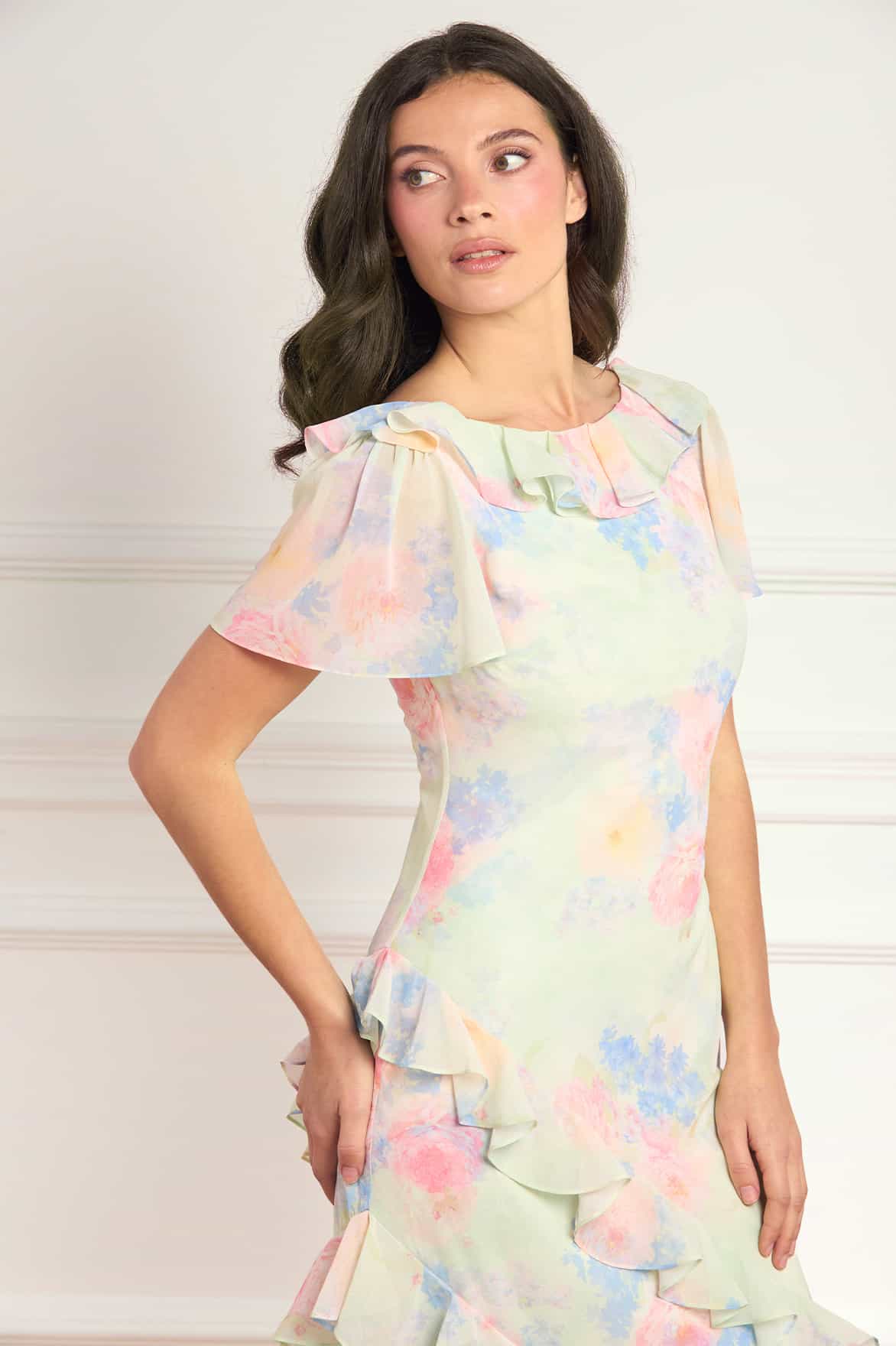 The below chart is designed to help you navigate our various dress lengths. All of our dresses are measured on a 5”6’ / 168cm model, so please bear in mind that if you’re taller / shorter, the dress will sit differently. However, we’ve provided the lengths from the waist to hem for you to measure yourself.