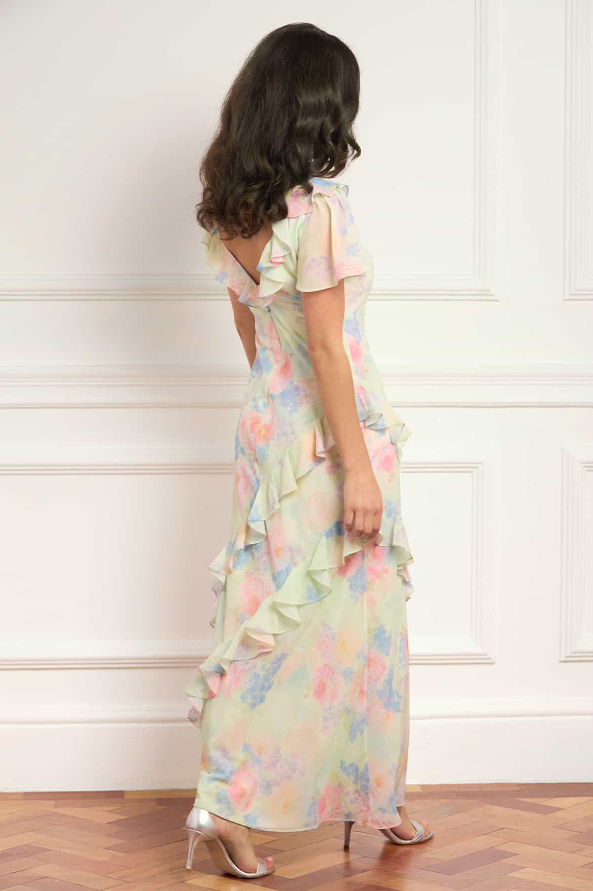 • Gown length: finishes floor length but can accommodate a higher heel, on a 5”6’ / 168cm model.
