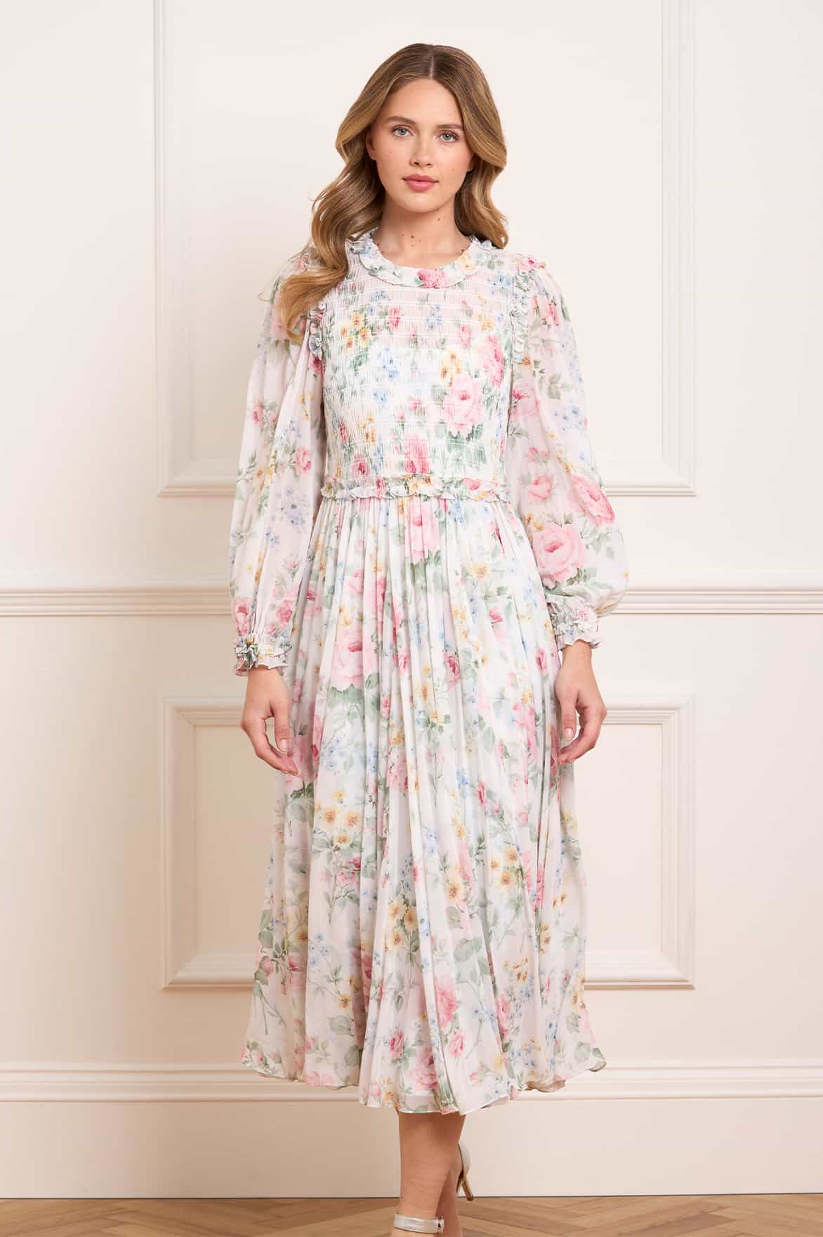 Pompadour Garden Chiffon Smocked Ballerina Dress