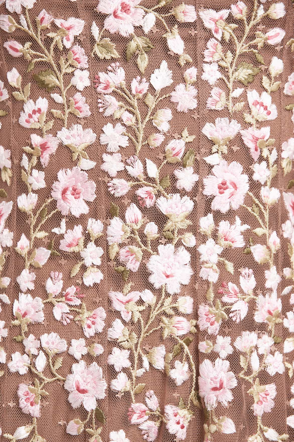 - Kisses tulle sheer dress decorated with floral embroidery.